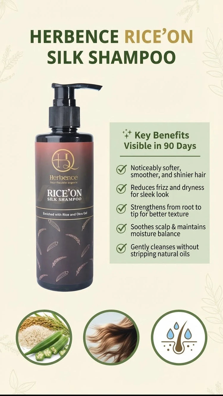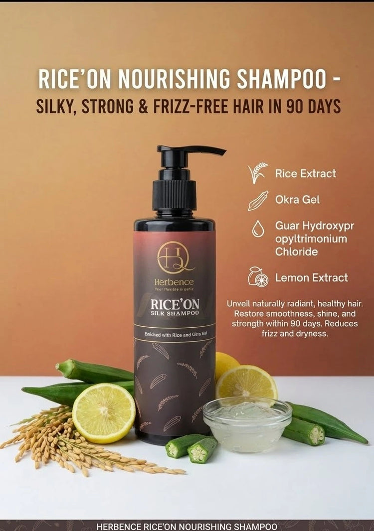 Unveil naturally radiant, healthy hair with Rice’On Nourishing Shampoo — a luxurious botanical blend infused with Rice Extract, Okra Gel, and natural conditioners.